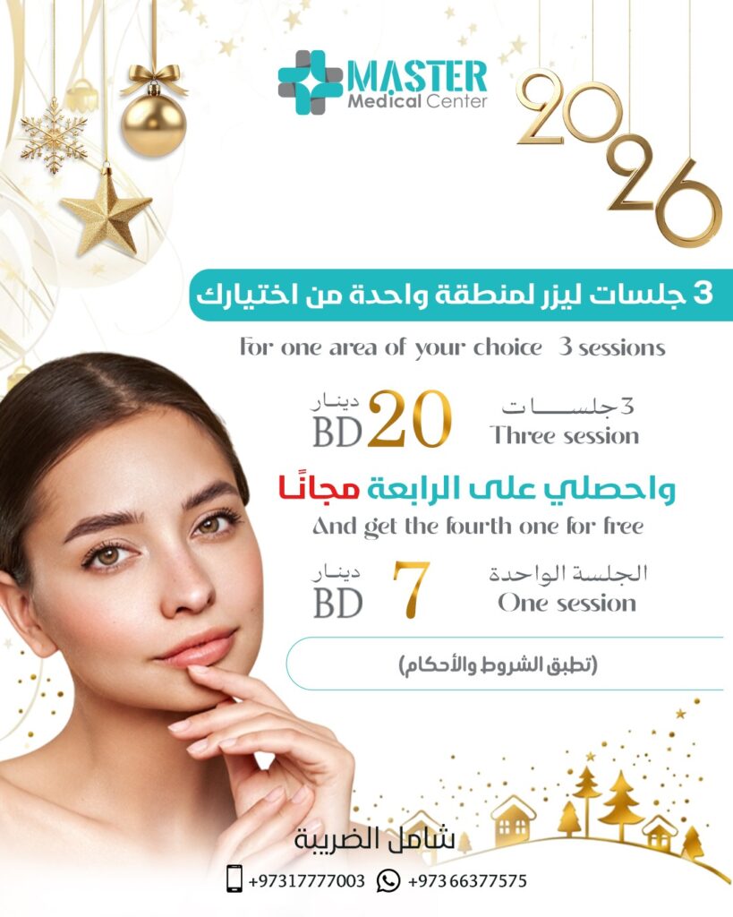 3 جلسات ليزر منطقة واحدة من اختيارك + الرابعة مجاناً